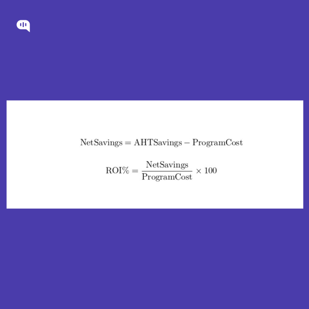 - Payback (months) = ProgramCost / (DeflectionSavings + AHTSavings)