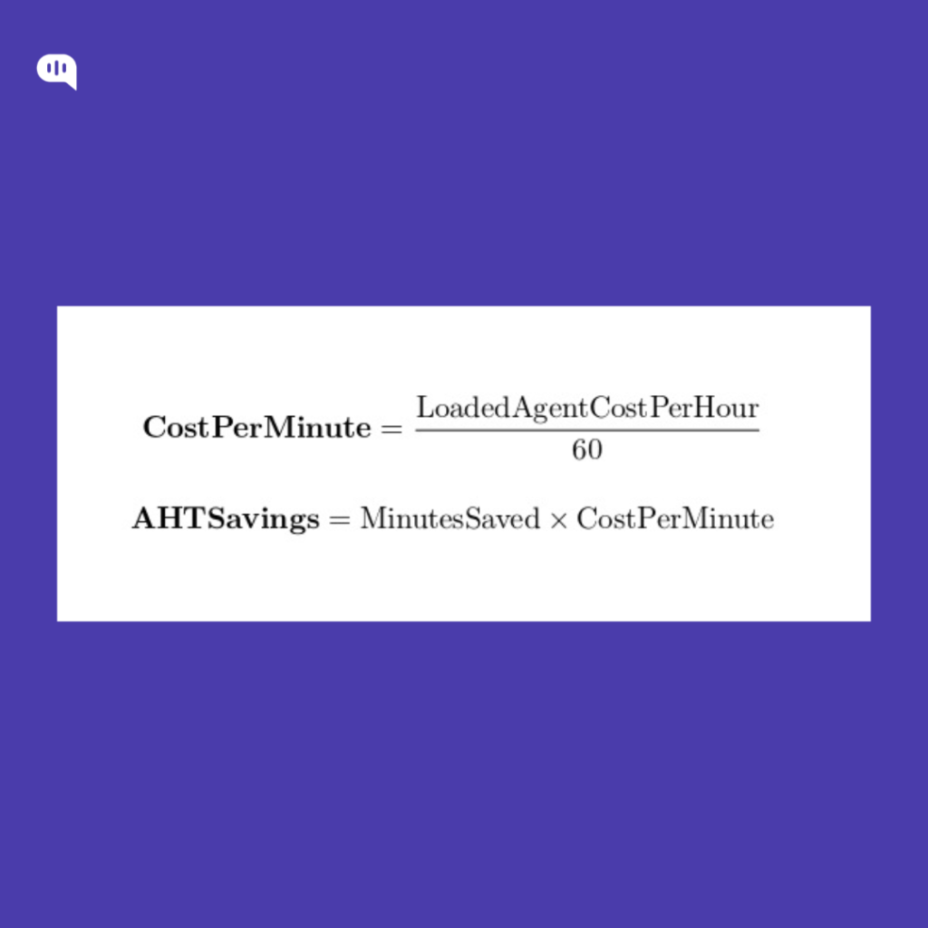 - AHT savings = Escalations × HandleTimeDelta × CPM